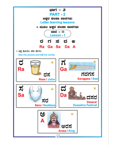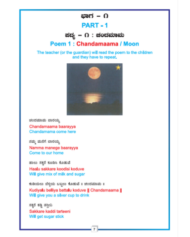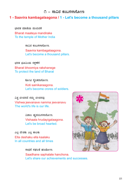 The objective of this book is to meaningfully connect the academic Kannada content with an understandable English translated meaning, helps with accurate pronunciation for the young minds with limited support from their parents.